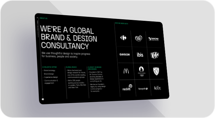 10 ABOUT US WHO WE WORK WITH YBOOK WE’RE A GLOBAL THE BRAND EXPERIENCE PLABRAND & DESIGN CONSULTANCY We use thoughtful design to inspire progress for business, people and society. A HOLISTIC OFFER GLOBAL REACH A LEGACY IN BRAND - We’re the brand and AND DESIGN - Brand strategy design network for Havas, - Founded in 1957 by - Brand design one of the world’s leading Sir Terence Conran, - Experience design communications groups we bring decades of - Communication & - We’re 200 people design experience to engagement working across studios everything we do. in London, Paris, Mumbai - We live our founder’s and New York legacy by using design to drive progress – for everyone.