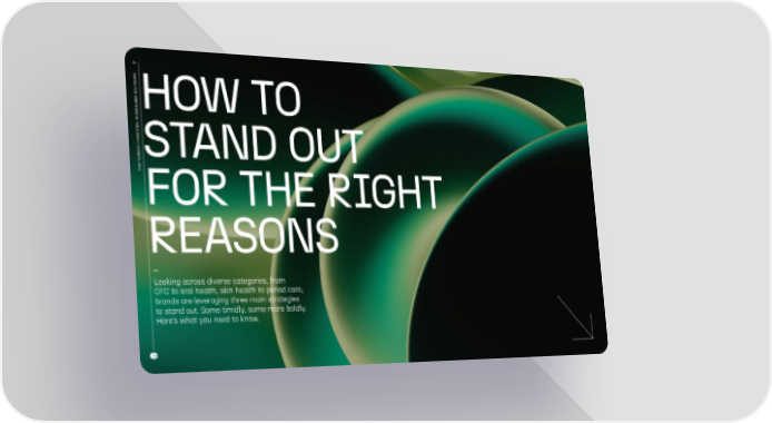 3 E R A C H T L A E R H E M U SHOW TO N O N C N I O I T N E V N K CO A E RSTAND OUT O B W T O HFOR THE RIGHT REASONS Looking across diverse categories, from OTC to oral health, skin health to period care, brands are leveraging three main strategies to stand out. Some timidly, some more boldly. Here’s what you need to know.